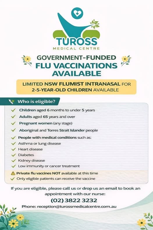 At Tuross Medical Center, we understand that health concerns don’t take a holiday. Whether you’re a local or visiting our coastal town, our doctor is here to provide compassionate, professional care. From routine check-ups to unexpected concerns, you’ll find friendly support and trusted medical advice to help you enjoy your time in Tuross Head with peace of mind.